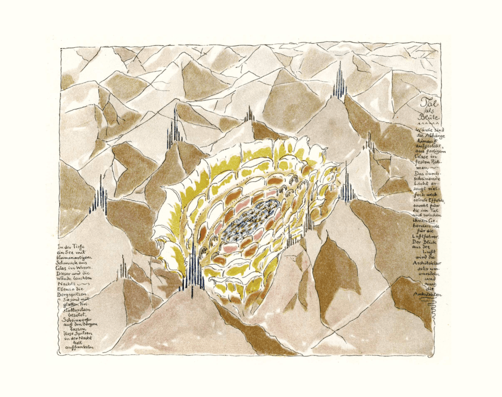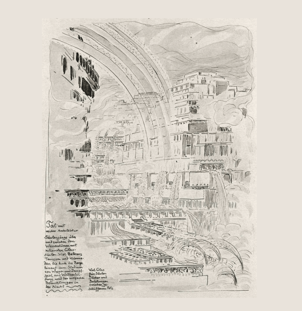 24 Bruno Taut, “Die Stadtkrone: mit beitragen von Paul Scheerbar, Erich Baron, Adolf Behne.” (Jena: verlegt bei Eugen Diederichs, 1919), 87.