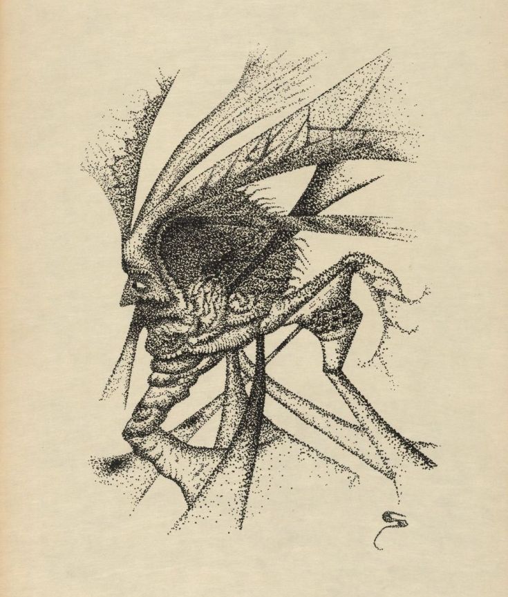 “The bullet made a dent in the surface of the earth, and the size of the hole was the same as the bullet. Today’s “bullet” has reached the invisible mystery, as it can destroy all life without rendering a mark on the surface of the earth. The spirit is now self-destructive. Matter has claimed a total victory. The mask is left behind in conversation with the doll.”
