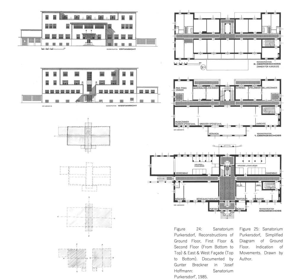 Figure 21: Joseph Gardella, ʻechoes of a new lifeʼ, 2021. / Figure 22: Sanatorium Purkersdorf, Exterior Shot ʻWest Façadeʼ, Photo Documentation by Gunter Breckner in ʻJosef Hoffmann: Sanatorium Purkersdorfʼ, 1985. / Figure 23: Sanatorium Purkersdorf, Exterior Shot ʻEast Façadeʼ, Photo Documentation by Gunter Breckner in ʻJosef Hoffmann: Sanatorium Purkersdorfʼ, 1985.