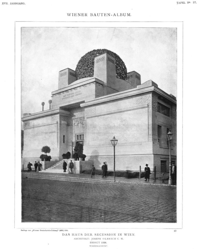 7: Josef Maria Olbrich, 1898. ʻDas Haus der Secession in Wienʼ (Vorderansicht). Photograph Origin: Wiener Bauindustrie-Zeitung 1899- 1900. / 9: Gustav Klimt, 1898. ʻTheseus and the Minotaurʼ, Cover of ʻVer Sacrumʼ. Lithograph. Fin-de-Siècle Vienna: Politics and Culture. / 10: Photograph of patients at work at the Haschhof Colony. From H. Schlöss, Die Irrenpflege, p. 214, bottom. Bibliothek der Medizinischen Universität Wien. / 11: Josef Hoffmann, Portrait, Vienna. Photograph post 1945, Yoichi Okamoto. Österreichisches Museum für angewandte Kunst/Gegenwartskunt (MAK).